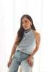 Blusa satinada con acabado suave y elegante. Su diseño halter estiliza la silueta y aporta un toque sofisticado a cualquier look.