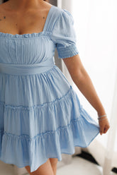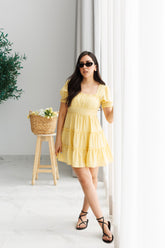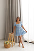 Vestido corto básico con escote cuadrado y mangas cortas. Su cintura marcada y falda con vuelo le dan un movimiento muy bonito y femenino. Ligero, fresco y perfecto para días soleados o planes casuales con estilo. ✨