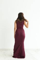 VESTIDO DE FIESTA LARGO , CON DETALLE DORADO EN LA CINTURA.